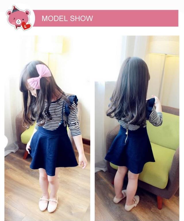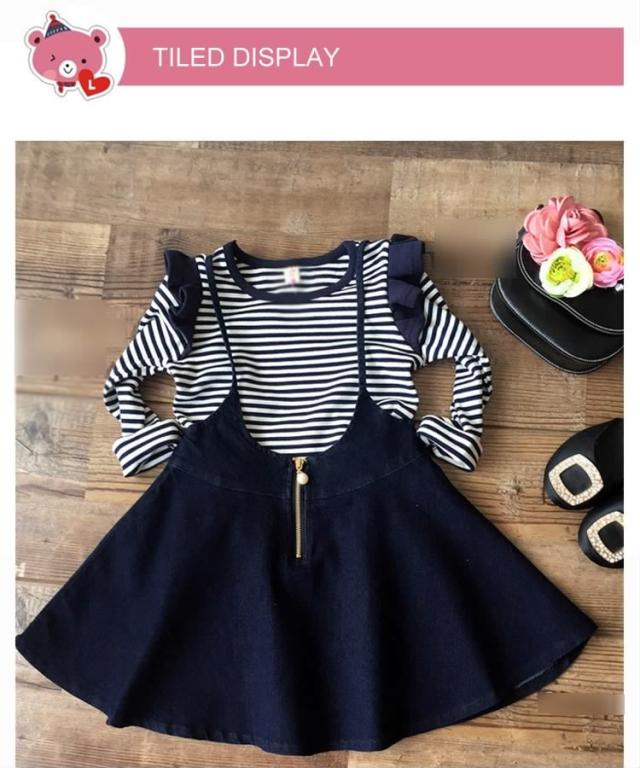 送料無料上下セット Tシャツ&ジャンパースカート デニムスカート 長袖 子供服 セットアップ ボーダー柄Tシャツ チュール ミニスカート