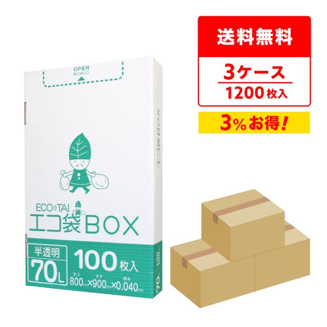 ポリ袋 ゴミ袋 箱タイプ 70リットル 半透明 80x90cm 0.040mm厚 100枚x4小箱x3箱 HK-740-3 ごみ袋 70l BOXタイプ 箱型 収納 ホワイト サンキョウプラテック 送料無料