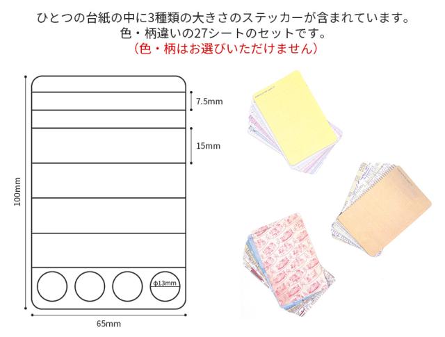ひとつの台紙にマステのようなテープ状のものや円形など3種類のシールがあり、