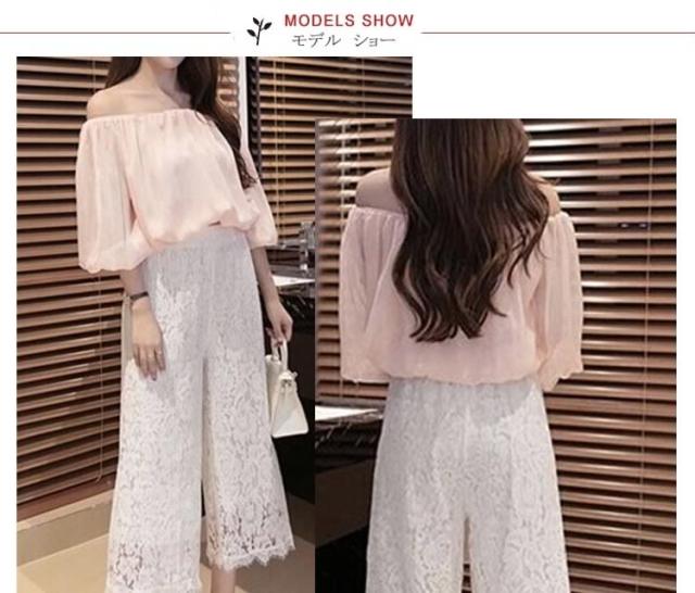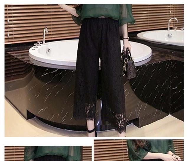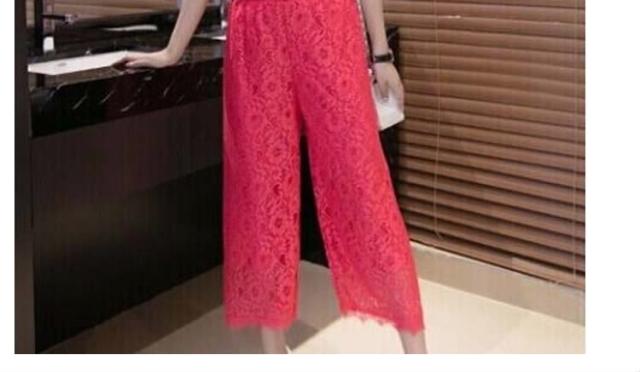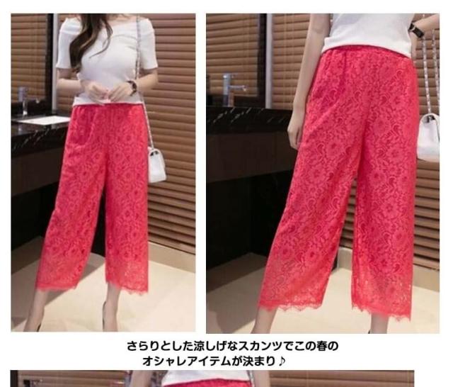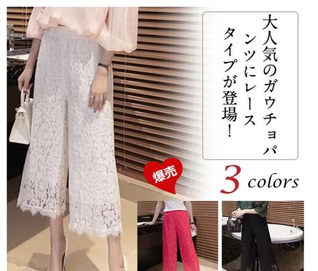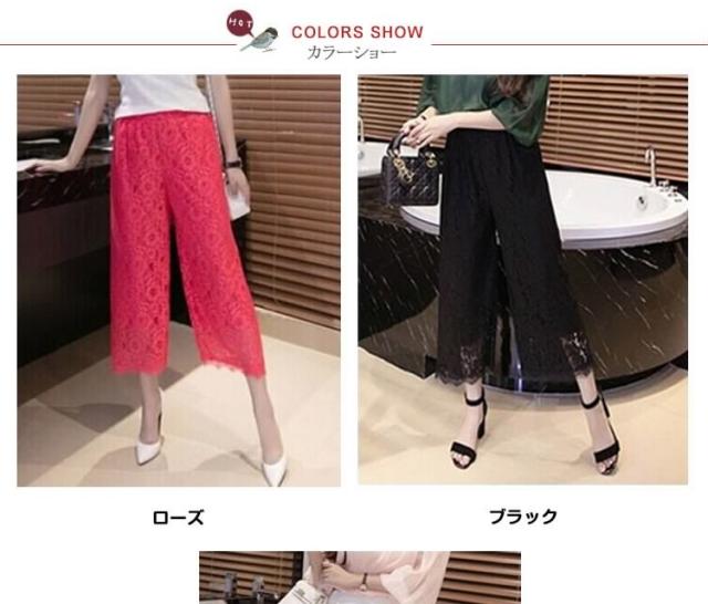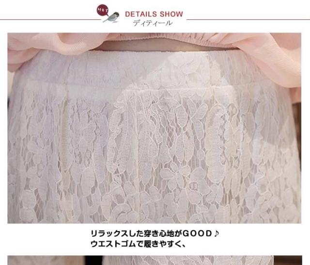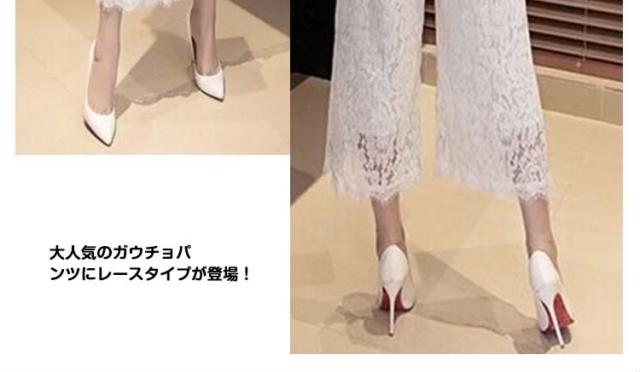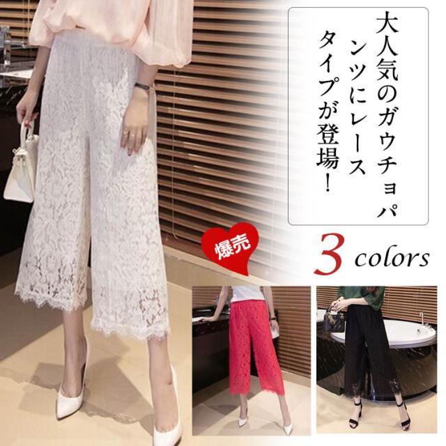 ガウチョパンツ 9分丈パンツ 総レース スカンツ スカーチョ レディース 花柄レース ウエストゴム 裏地付き きれいめ フェミニン 2017春新作