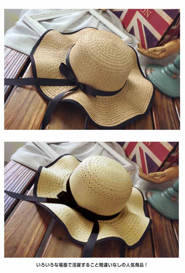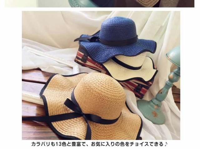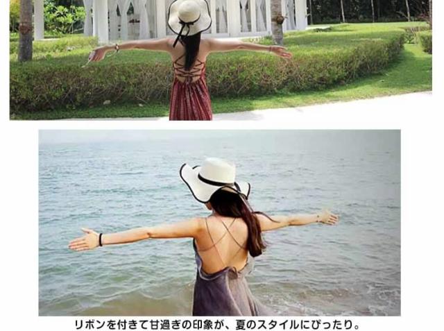 ハット 帽子 女優帽 麦わら リボン付き レディース カンカン帽子 つば広ハット つば広帽 日よけ帽子 UV対策 キャップ 紫外線対策