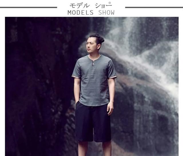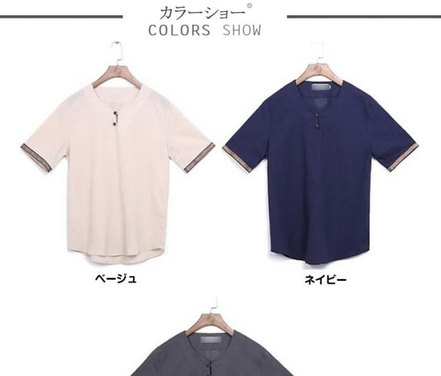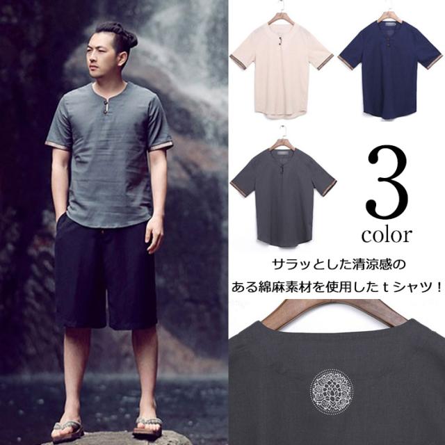 中国風tシャツ サマーtシャツ メンズ 綿麻tシャツ 袖バイカラー リネンtシャツ 半袖tシャツ 民族風tシャツ 夏tシャツ