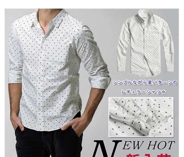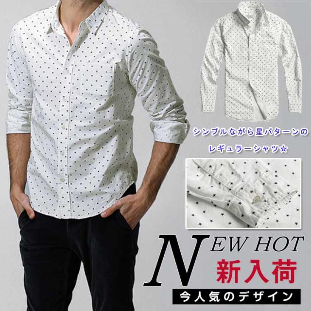 シャツ メンズ 長袖 カジュアルシャツ レギュラー 星柄 リラックス カジュアル 人気 スタイリッシュ