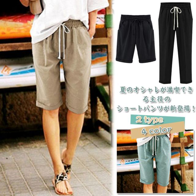 チノパンツ ハーフパンツ レディース ショートパンツ 紐 かわいい パンツ M-6XL ボトムス チノパンツ ハーフパンツ 夏
