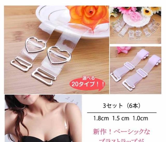 3セット(6本) ブラストラップ ブラ紐 透明ストラップ ハート かわいい 可愛い カワイイ オシャレ 2017夏新作