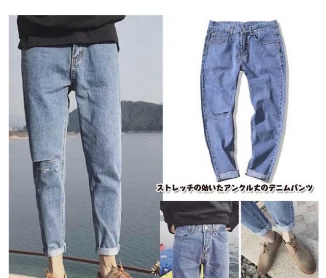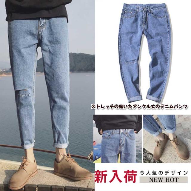 パンツ/メンズ/ズボン/デニムパンツ/ジーンズ/ジーパン/ダメージデニム/スキニーデニム/九分丈デニム/スリムデニム/メンズファッション/ボトムス/春服/細身/お兄系/オシャレ/ウォッシュ