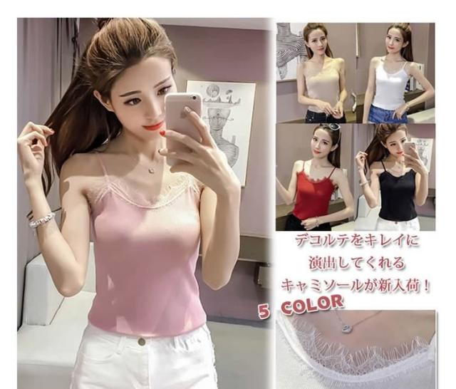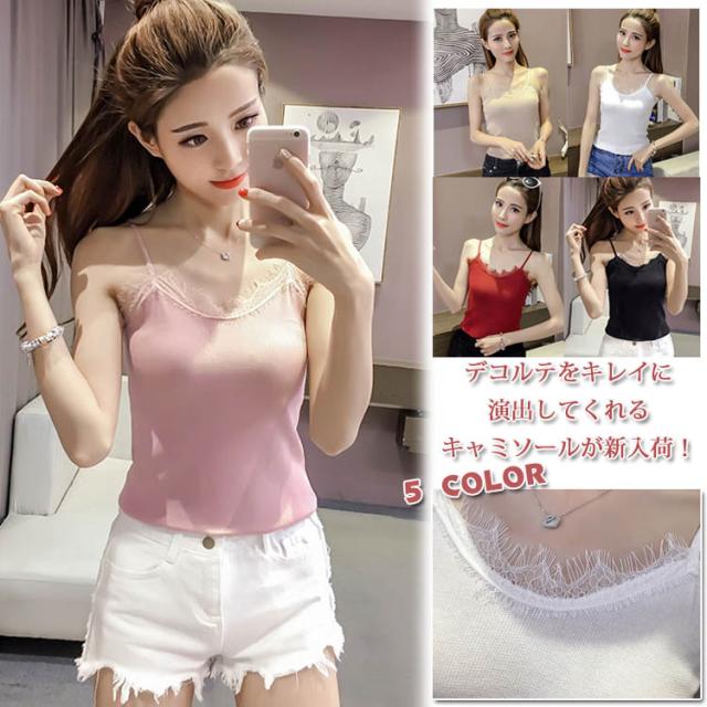 キャミソール キャミ インナー レース付き タンクトップ 肌着 下着 トップス レディース 重ね着 シンプル 2017春新作