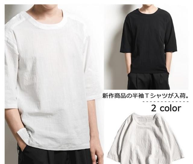 5分袖Tシャツ カジュアルTシャツ インナーTシャツ カットソー トップス メンズ クルーネック 無地 柔らかい リラックス ゆったり 2017春新作