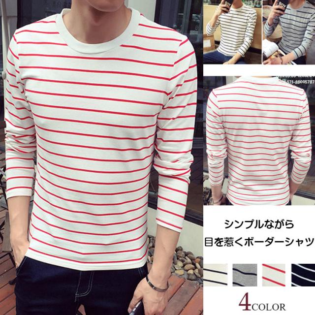 トレーナー/メンズ/プルオーバーシャツ/カットソー/長袖トレーナー/Tシャツ/ボーダーシャツ/カジュアルシャツ/トップス/メンズファッション/薄手/クルーネック/着痩せ/スリム/大きいサイズ
