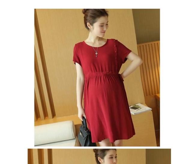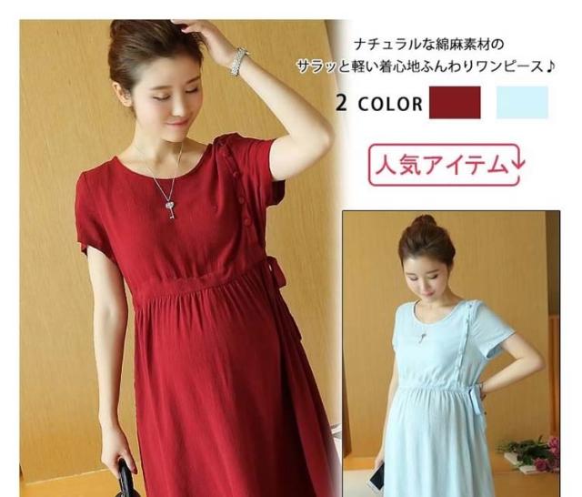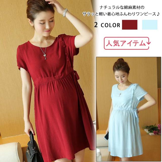 マタニティワンピース ショート 綿麻ワンピース リネンワンピース ママワンピース 夏ワンピース 半袖ワンピース 妊婦服 マタニ