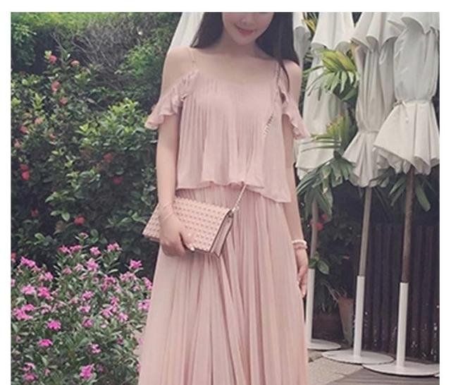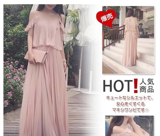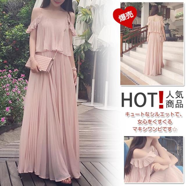 オフショルダーワンピース マキシ キャミソールワンピース レイヤード風ワンピース リゾートワンピース 浜辺ワンピース 無地ワンピ 2017夏新作