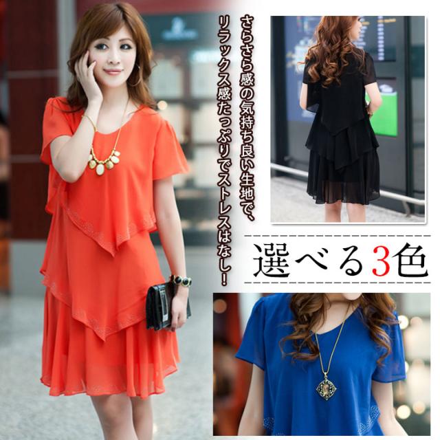 ワンピース レディース 夏 半袖ワンピース 膝丈 キレイめ 春夏 Aライン シフォンワンピース 無地