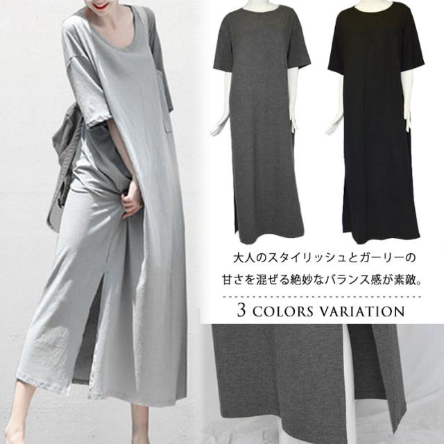 マキシワンピース 夏 半袖 ロングワンピース 韓国 やすい ワンピース 夏 キレイめ ルームウェア 無地 肌触りの良い
