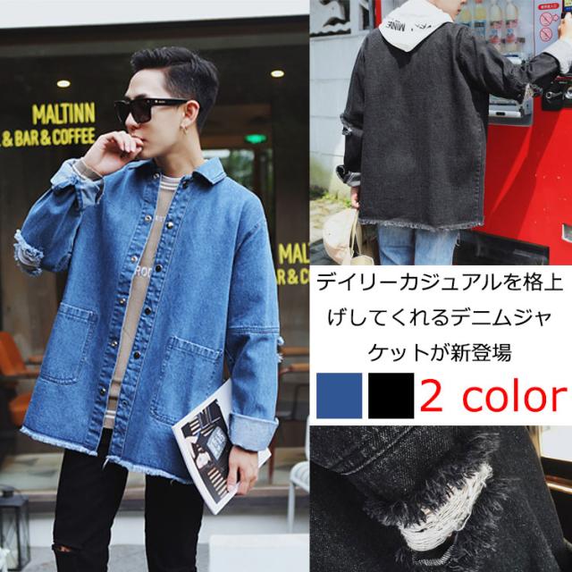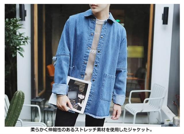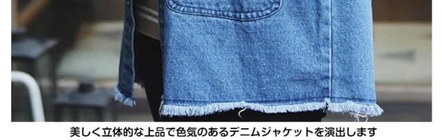 デニムコート/デニムアウター/デニムジャケット/ライトアウター/ダメージ加工/長袖/前開き/ボタン/大きいサイズ/シック/クラシ
