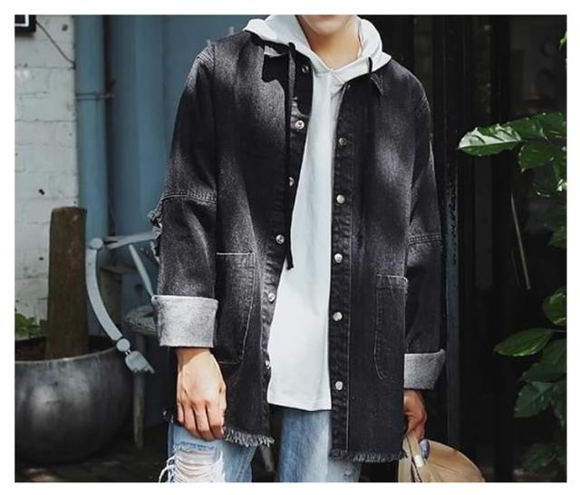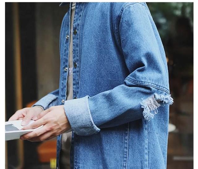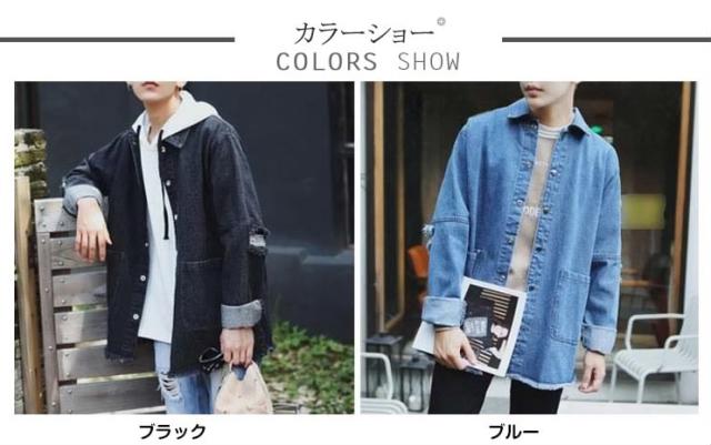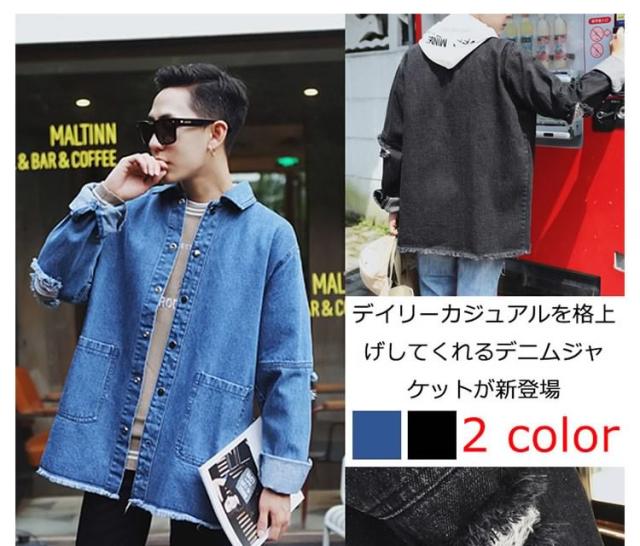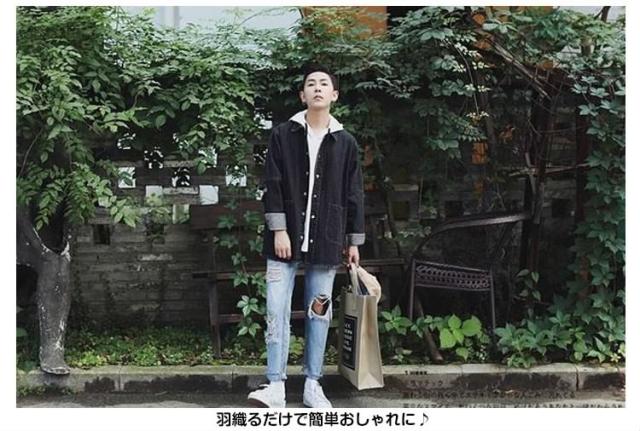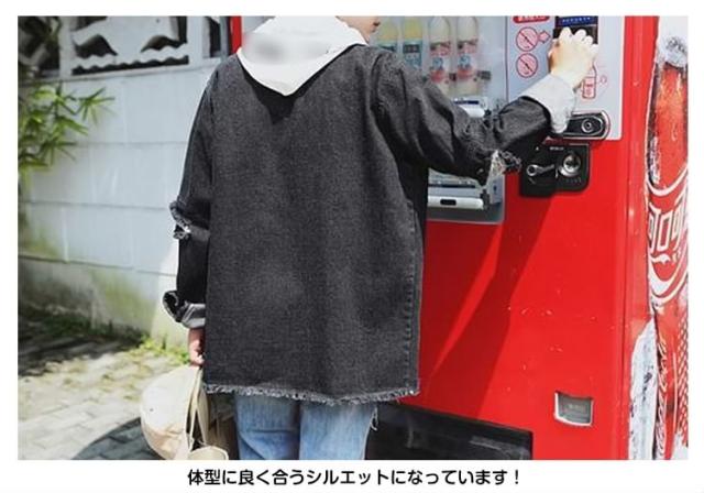 デニムコート/デニムアウター/デニムジャケット/ライトアウター/ダメージ加工/長袖/前開き/ボタン/大きいサイズ/シック/クラシック/レトロ/スタイル