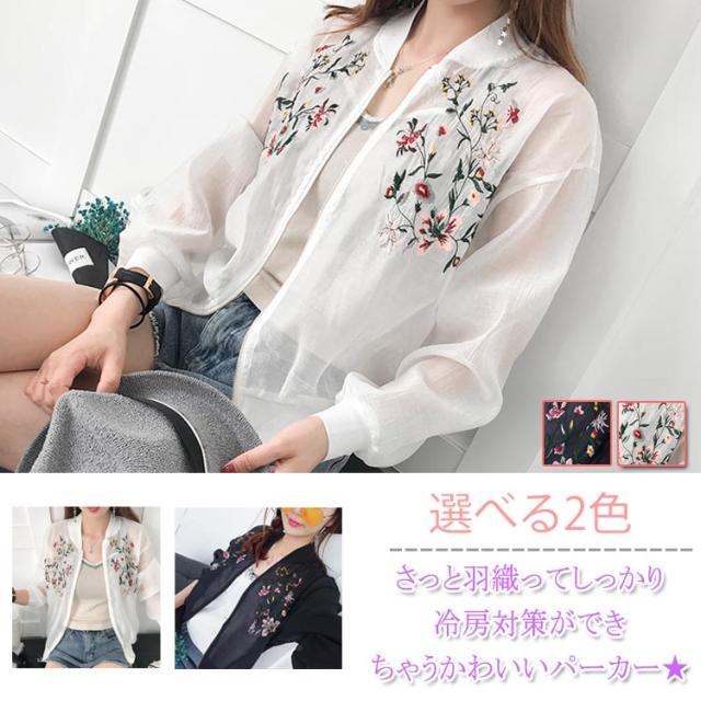 刺繍/レディース/女性用/パーカー/スタジャン/長袖パーカー/花柄刺繍パーカー/ロングスリーブ