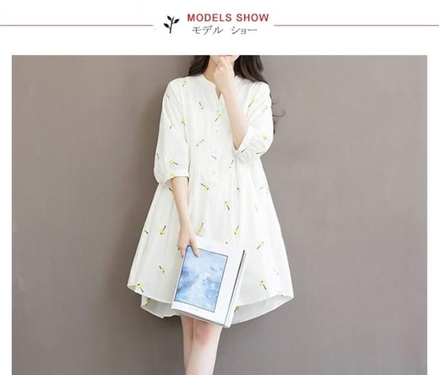 花柄ワンピース ショート フレアワンピース フラワーワンピース 七分袖 Aラインワンピース Vネック 刺繍ワンピース 膝上丈 春