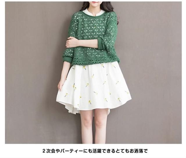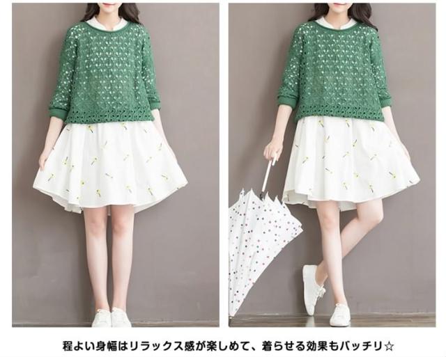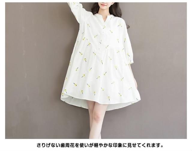 花柄ワンピース ショート フレアワンピース フラワーワンピース 七分袖 Aラインワンピース Vネック 刺繍ワンピース 膝上丈 春ワンピース