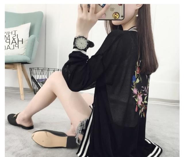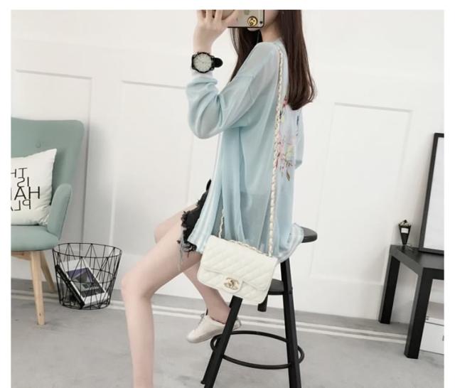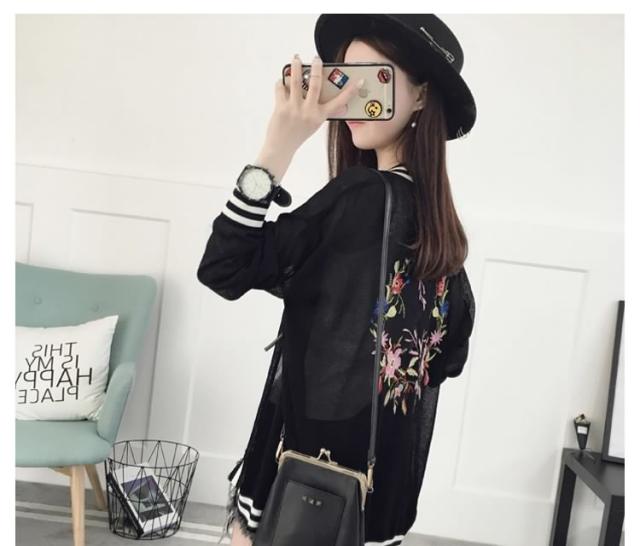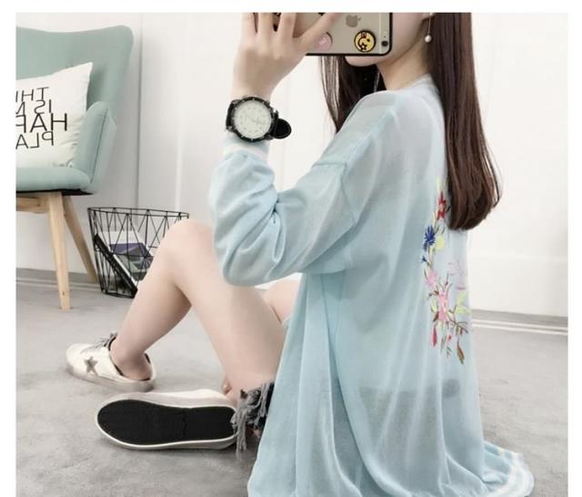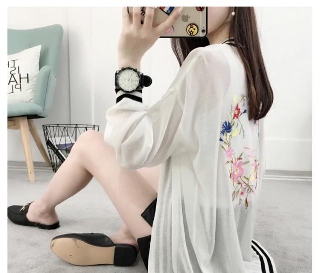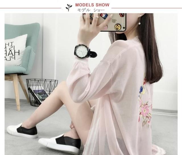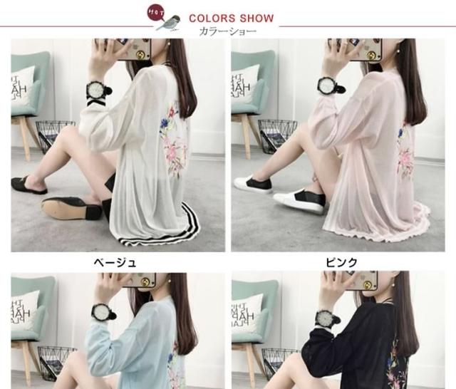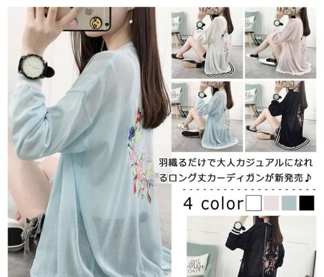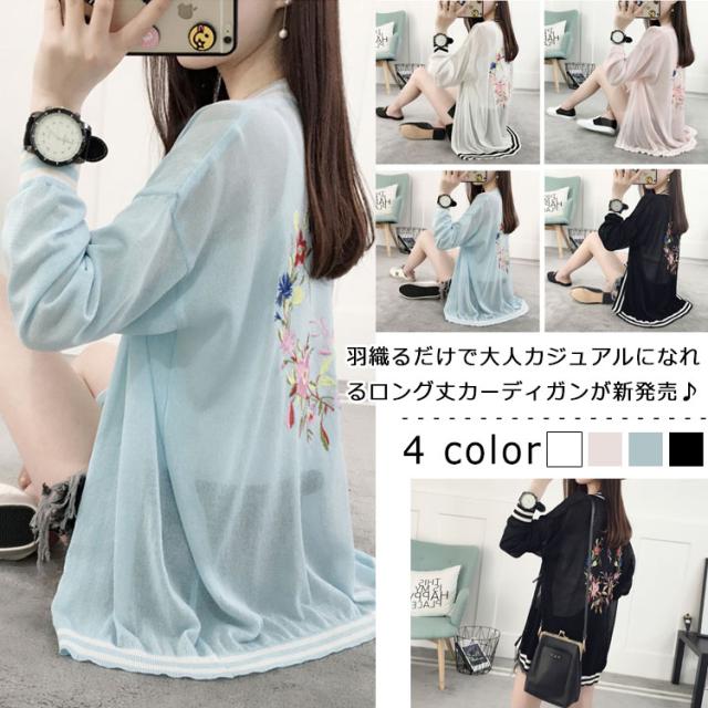 ロングカーディガン アウター 上着 ガウン ボレロ ディース 花柄刺繍 透け感 UVカット 紫外線カット 日焼け止め 冷房対策 2017春新作