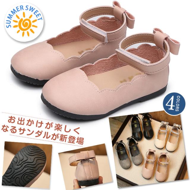 スリッパ/サンダル/子供用/女の子/キッズサンダル/ガールズサンダル/蝶結び付きサンダル/ぺたんこサンダル/キッズ靴/ドレス靴/