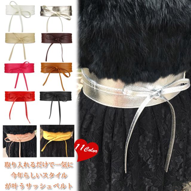 サッシュベルト ワイドベルト 太ベルト 巻きベルト レディース PU フェイクレザー クラシカル フェミニン アクセサリー 小物 装飾 2017春新作