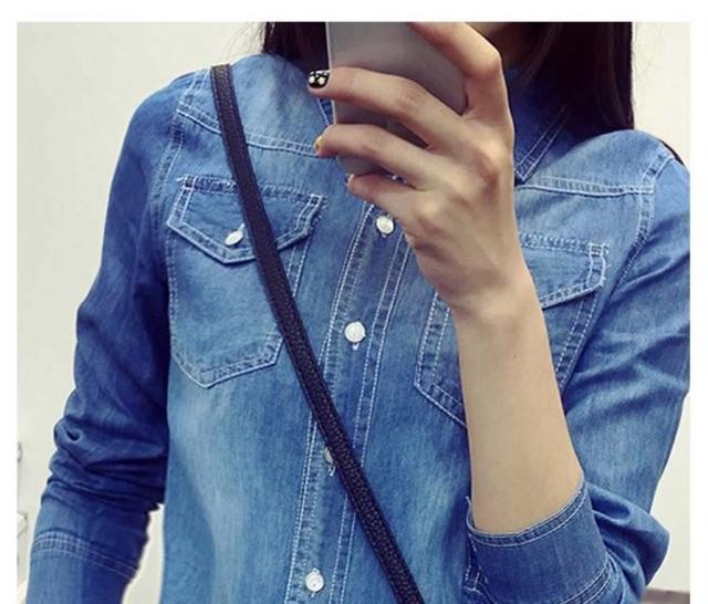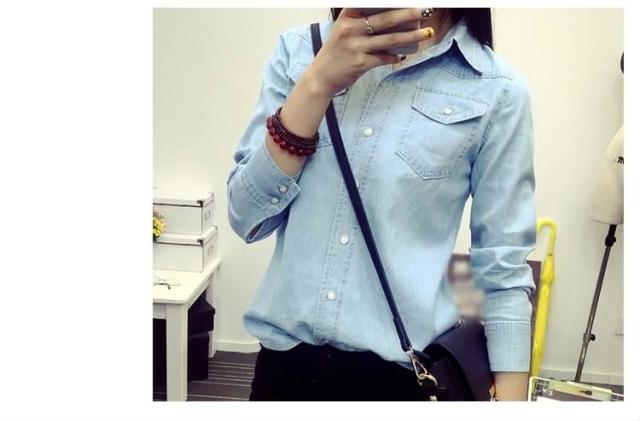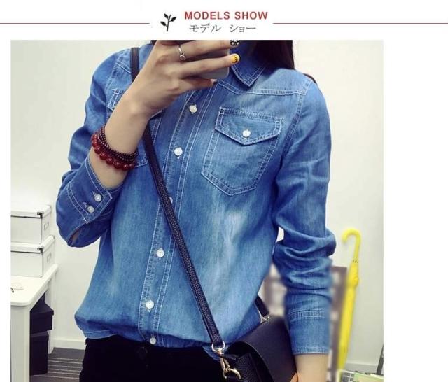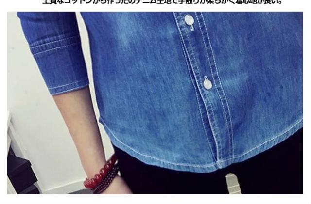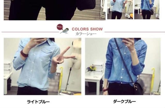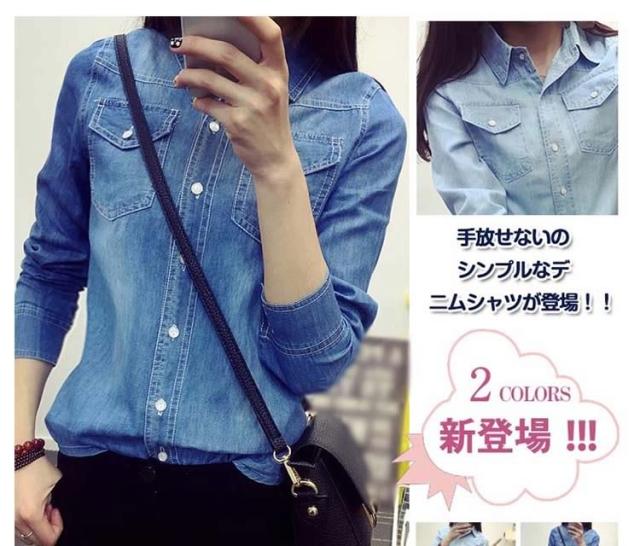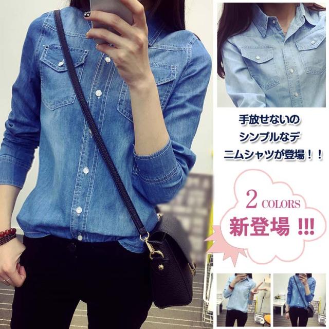 デニムシャツ 長袖シャツ ダンガリーシャツ カジュアルシャツ トップス レディース 折襟 前開き シンプル 無地 ボーイッシュ 2017春新作