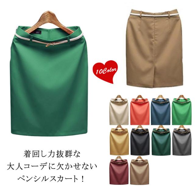 タイトスカート ミディアム丈 通勤スカート ペンシルスカート ボディライン 無地スカート OLスカート 膝丈 ベーシック バック