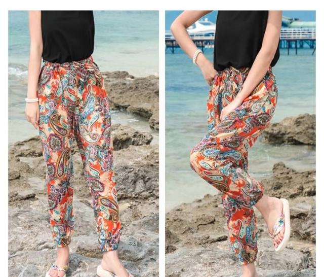 ドレープパンツ ビーチパンツ ロング サルエルパンツ シフォンパンツ ボヘミアン風パンツ ジョガーパンツ 花柄パンツ バルーンパンツ