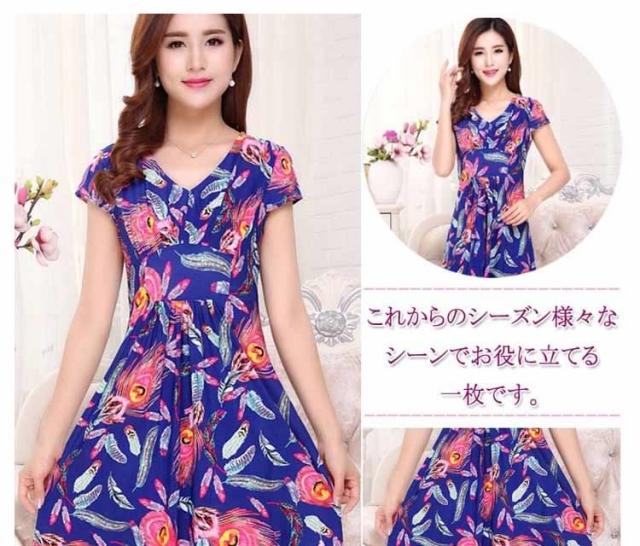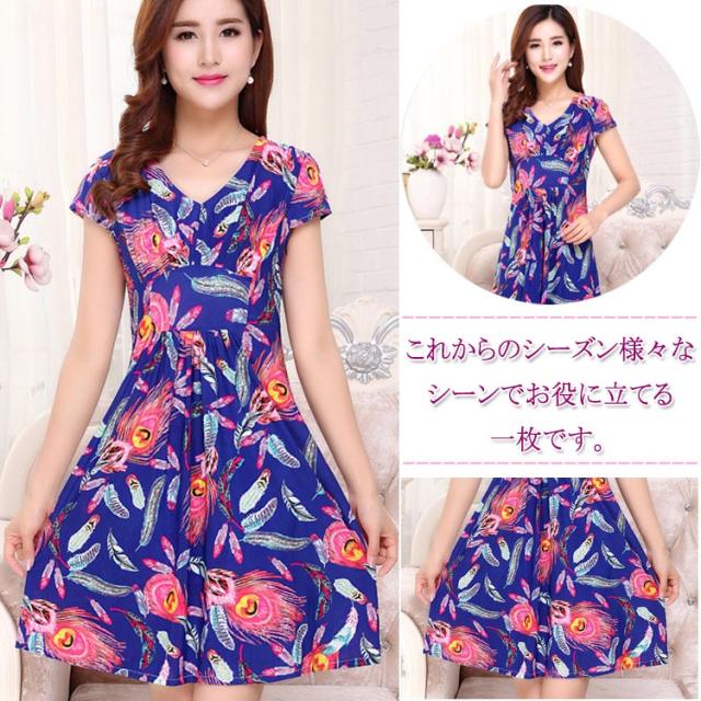 ワンピース 花柄 フラワー Vネック 通勤 フレア カシュクール風