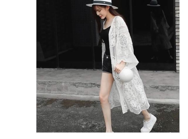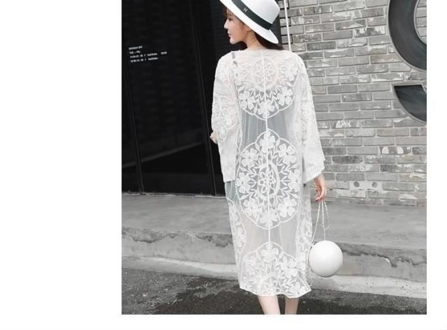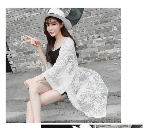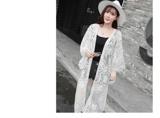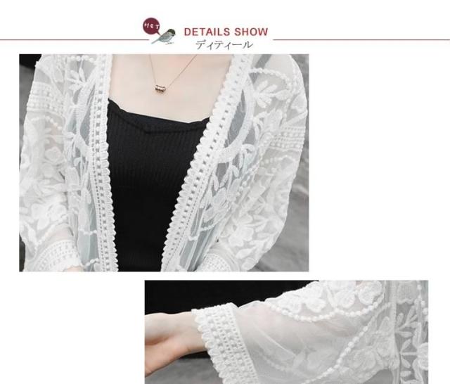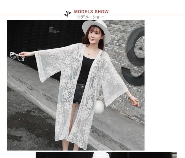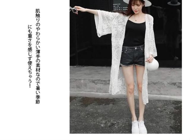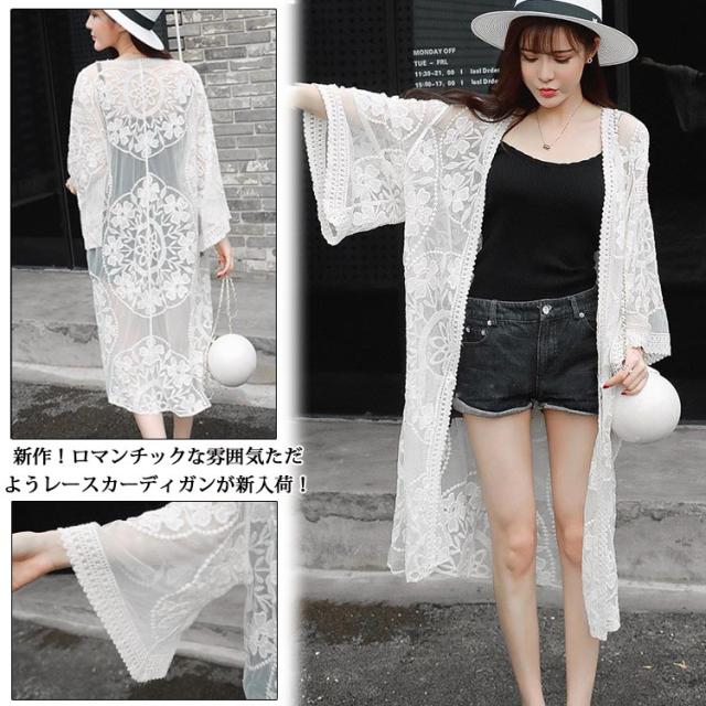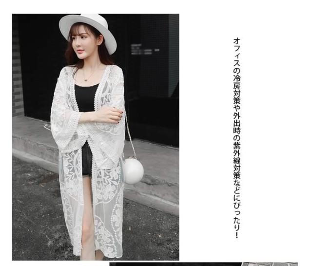レースカーディガン ロングカーディガン アウター ベルスリーブ サマー レディース 前開き レース 透け感 2017夏新作