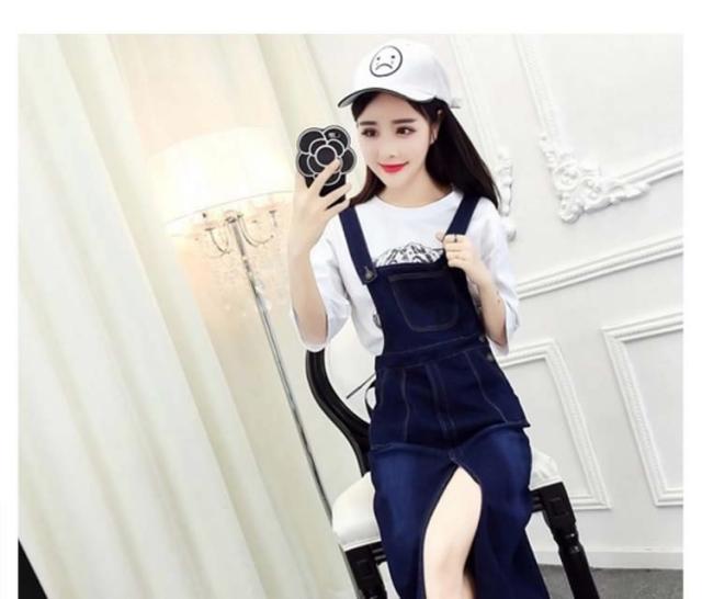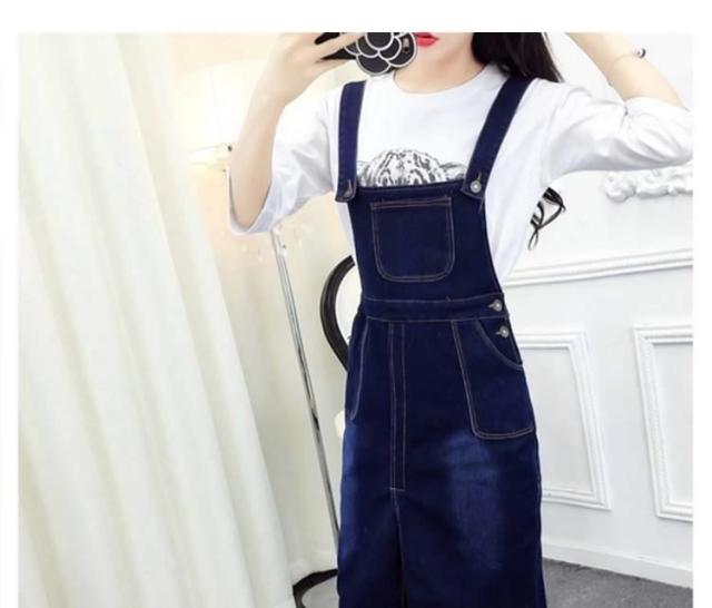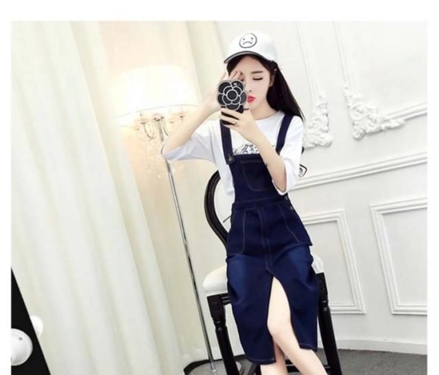 デニムスカート ジャンパースカート デニム ロング フロントスリット つなぎスカート サロペットスカート オーバーオール オールインワン 2017春