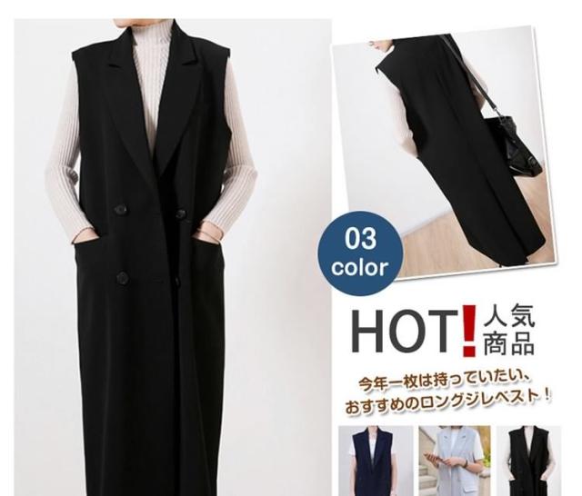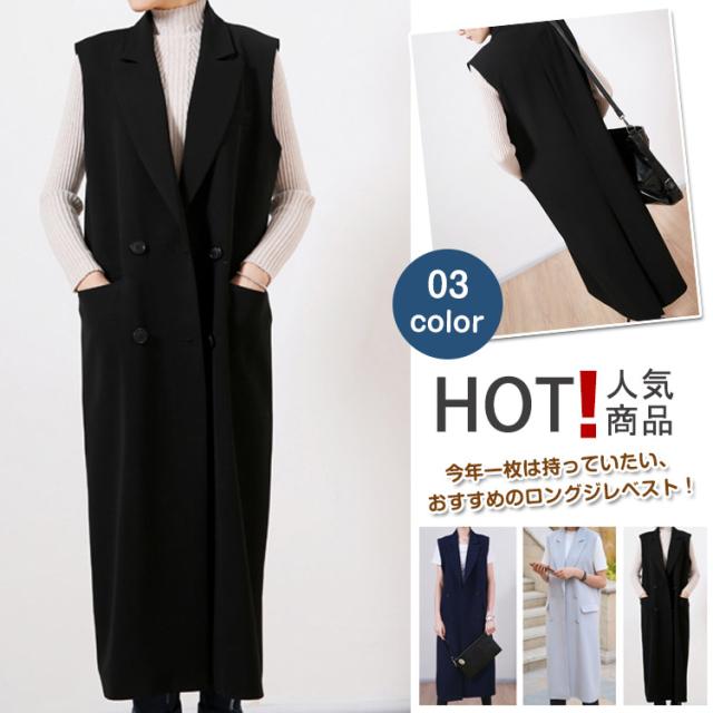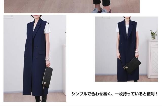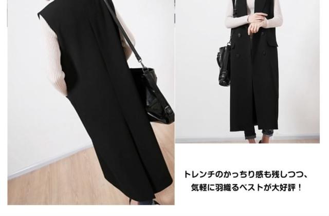 トレンチベスト ジレンチ レディース ロングベスト ダブルボタン Vネック 袖なしアウター 厚手コート ロングコート ベストコート 秋冬定番