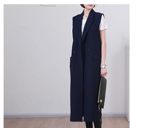 トレンチベスト ジレンチ レディース ロングベスト ダブルボタン Vネック 袖なしアウター 厚手コート ロングコート ベストコー