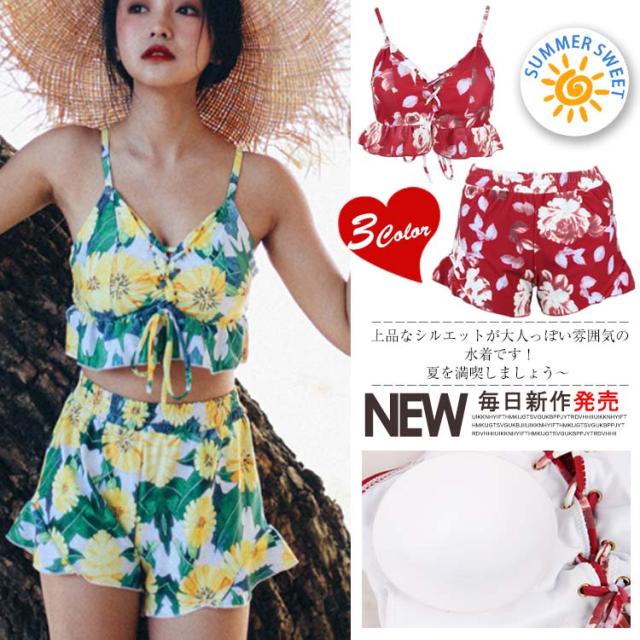 3点セット ビキニ上下 ショートパンツ 水着 レディース ワイヤーなしビキニ 体型カバー パッド付き ビキニ 大人 セクシー プール ビーチ 水着 夏 新作