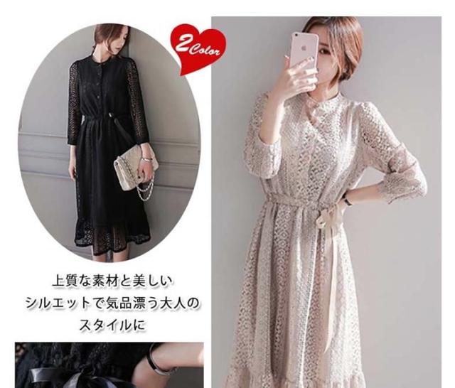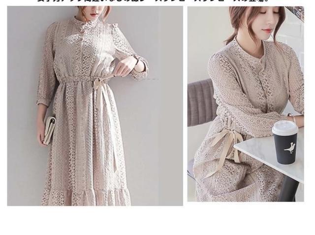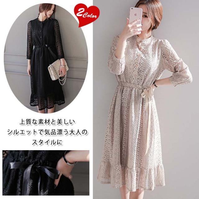 マキシワンピース 夏 レディース 長袖 ロングワンピース チュニック ワンピース フォーマル レース