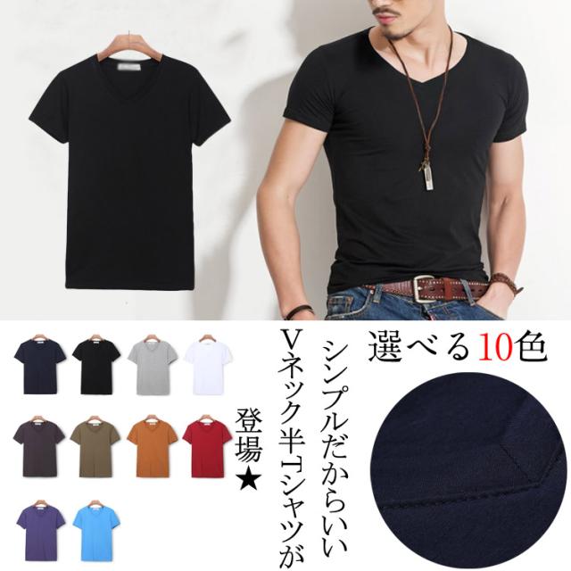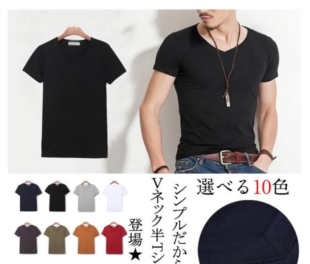 Tシャツ/メンズ/半袖/無地/カットソー/Vネック/インナー/メンズ/半袖Tシャツ/ストレッチ/フライス/夏定番/カジュアル/リ