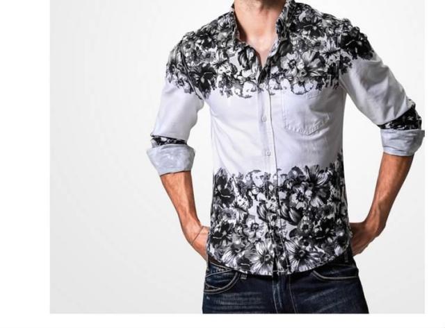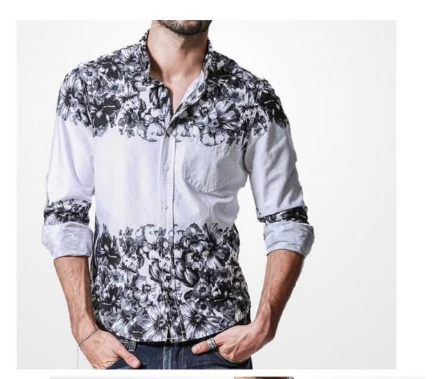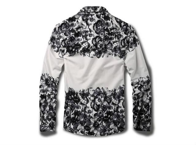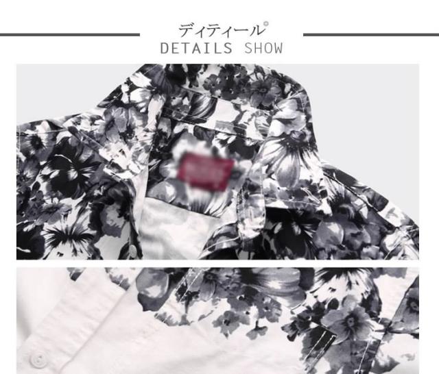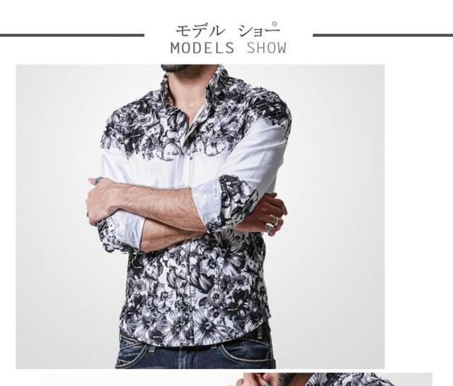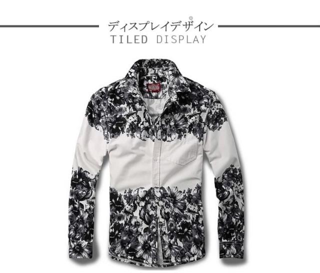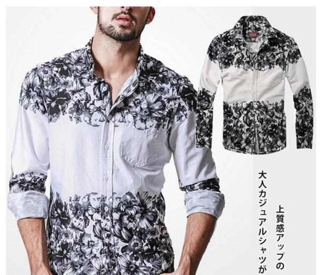 デニムシャツ/メンズ/長袖/大きいサイズ/春シャツ/アメカジ/カジュアルシャツ/カジュアル/おしゃれ/デニムシャツ/花柄プリント
