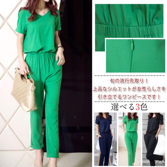オールインワン レディース 半袖 ロングパンツ セットアップ サロペット レディース 夏 オーバーオール ボトムス 春