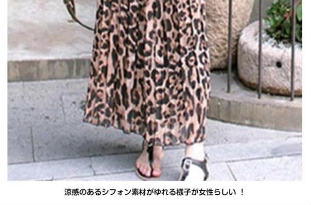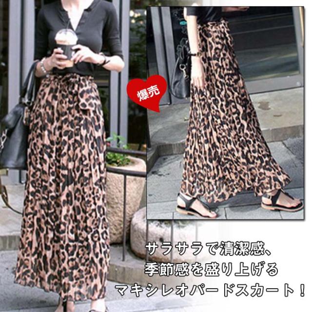 シフォンスカート フレアスカート ヒョウ柄スカート マキシスカート レオパードスカート Aラインスカート フリルスカート ロング