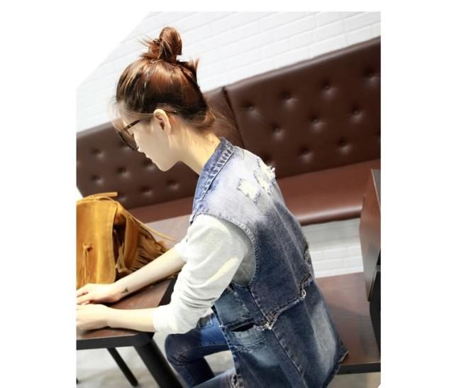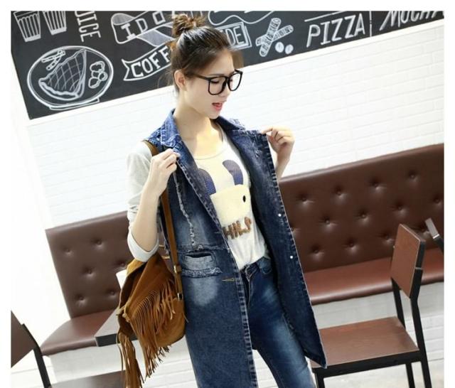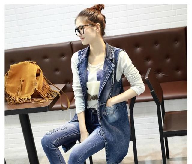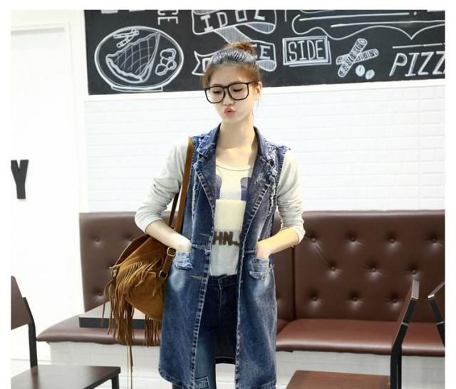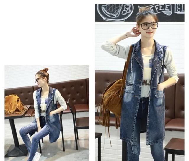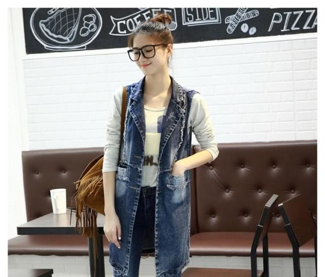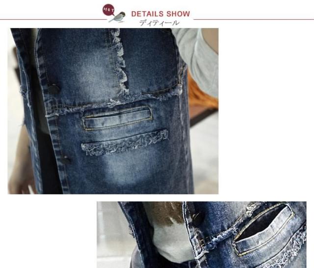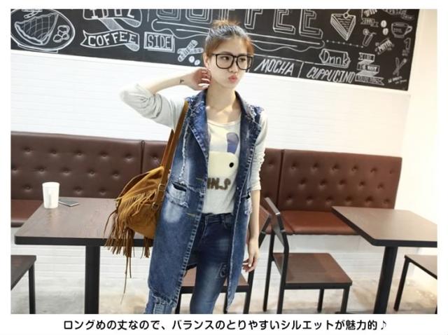 ジレンチ デニムベスト ロングベスト ロングジレ ジレベスト ベストコート チョッキ レディース ロング丈 襟付き 羽織り 2017春新作
