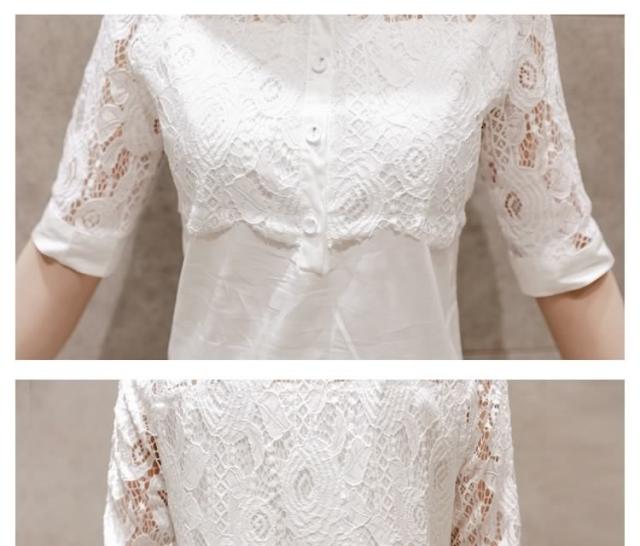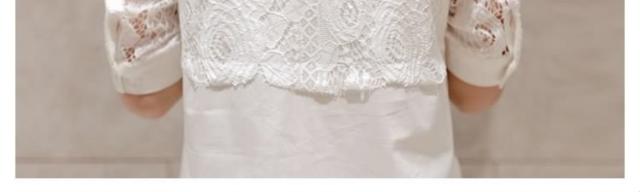 ホワイトシャツ レース切り替え レディース ロングシャツ チュニックシャツ シャツブラウス Aライン 長袖 花柄レース 爽やか フェミニン