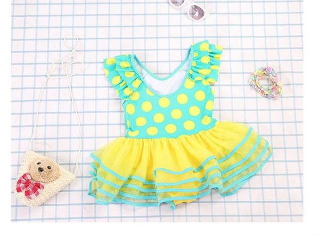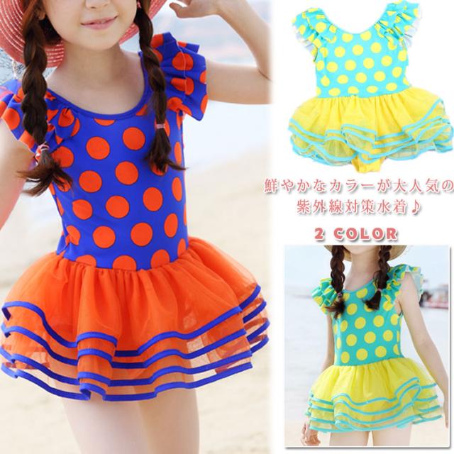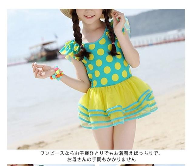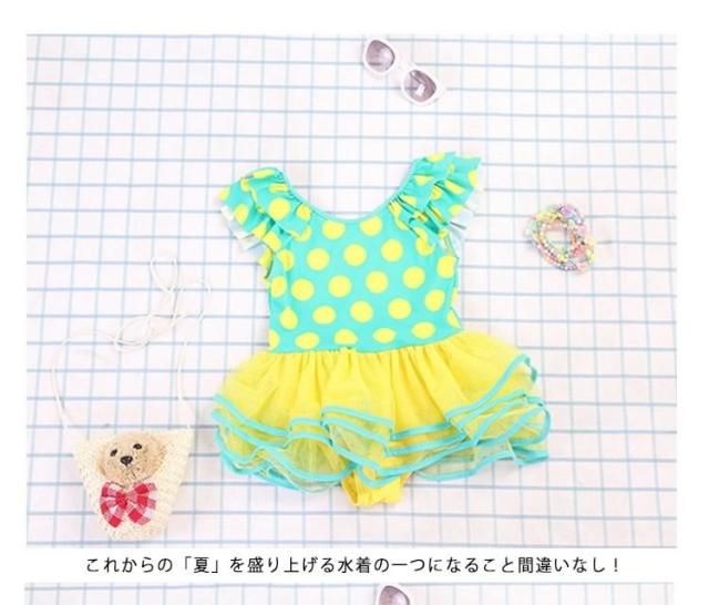 キッズ水着 子供水着 ワンピースタイプ スイムウェア 子供 女の子 ドット柄 4段フリル 鮮やか 可愛い ベビー 水泳 人気 プ