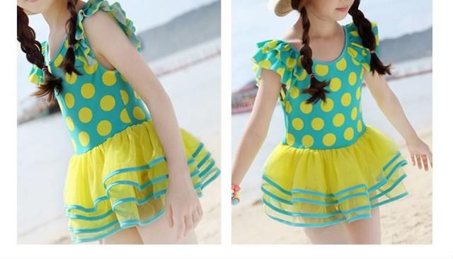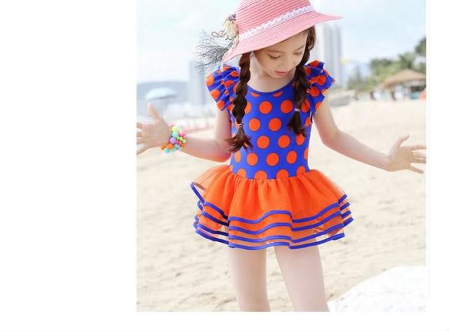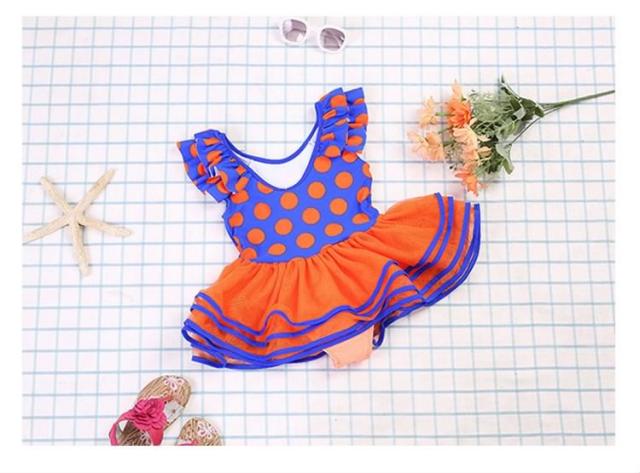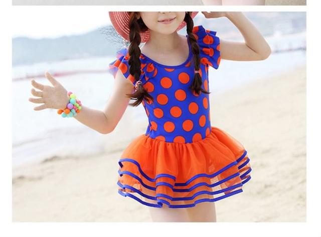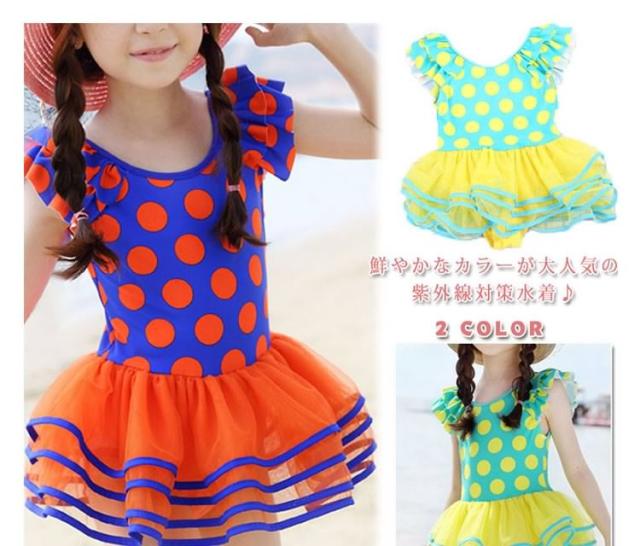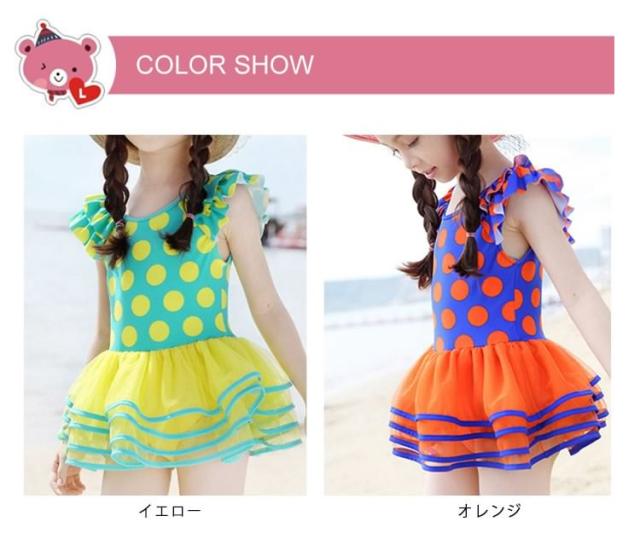 キッズ水着 子供水着 ワンピースタイプ スイムウェア 子供 女の子 ドット柄 4段フリル 鮮やか 可愛い ベビー 水泳 人気 プール 温泉