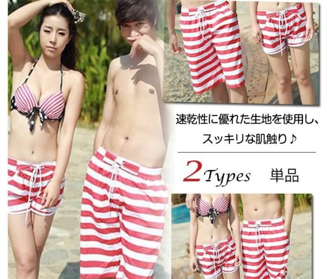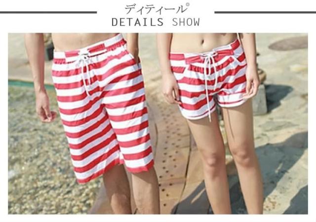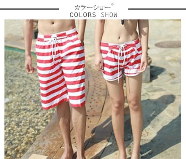 ペアルックパンツ ショートパンツ ハーフパンツ 海パン ショーパン ボクサー トランクス メンズ レディース ボーダー柄 速乾 海 夏 ペア