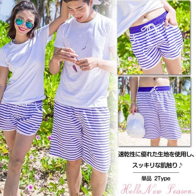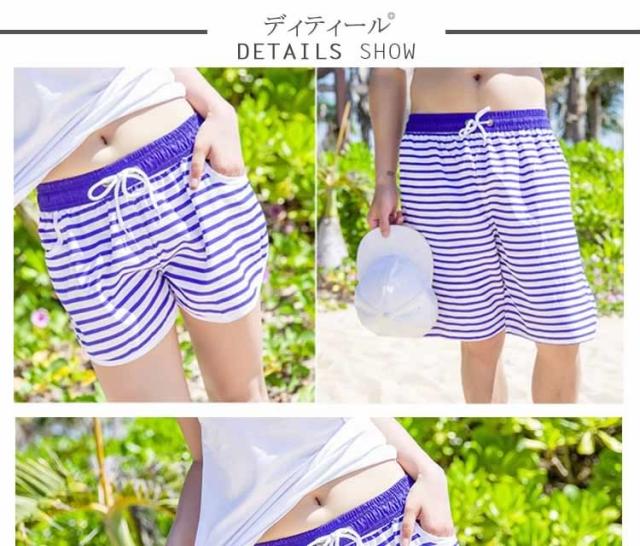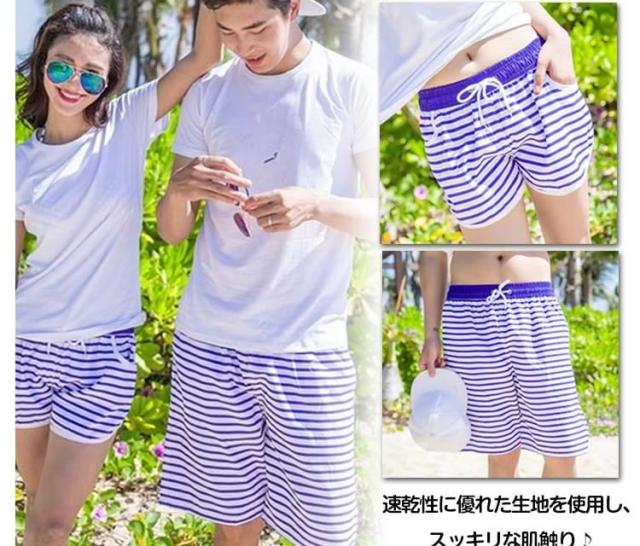 ペアルックパンツ ショートパンツ ハーフパンツ 海パン ショーパン ボクサー トランクス メンズ レディース ボーダー柄 速乾 海 夏 ペア