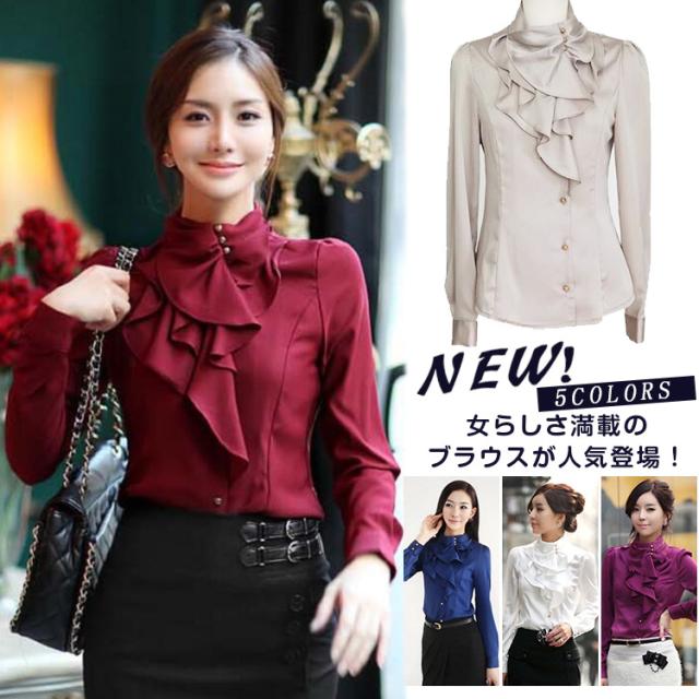 シャツ レディース シフォンブラウス レディース 長袖 シャツ レディース 無地 フォーマルシャツブラウス