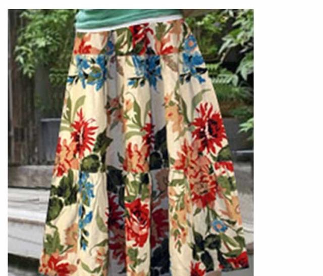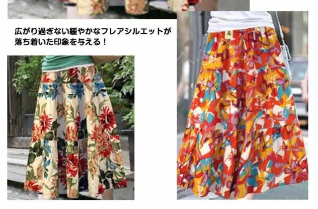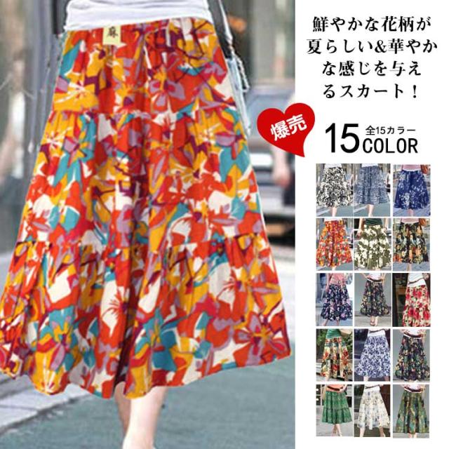 花柄スカート ロング フレアスカート 綿麻スカート エスニックスカート 民族風 ミモレ丈スカート サマースカート フリーサイズ