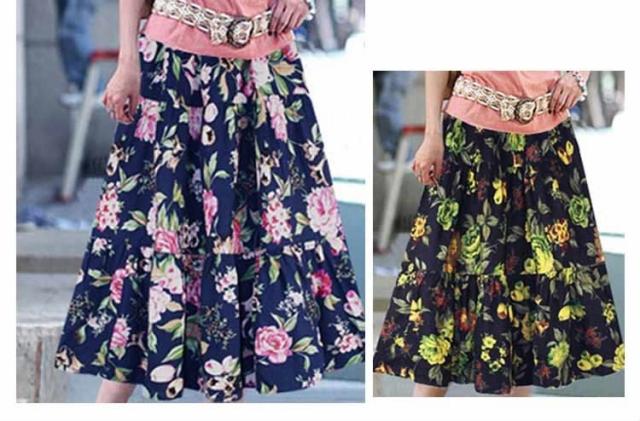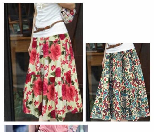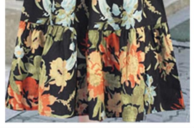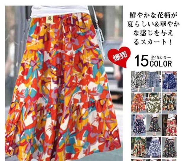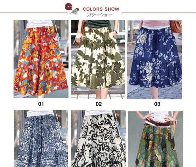 花柄スカート ロング フレアスカート 綿麻スカート エスニックスカート 民族風 ミモレ丈スカート サマースカート フリーサイズ 2017春新作