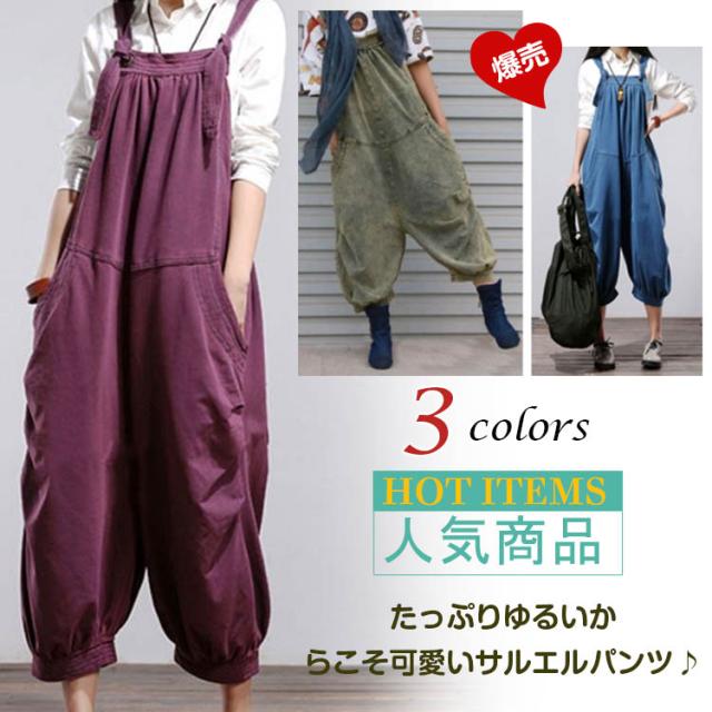 サスペンダーパンツ サルエルパンツ レディース ルーズパンツ オーバーオール サロペット 森ガール系パンツ つなぎパンツ 大HIT