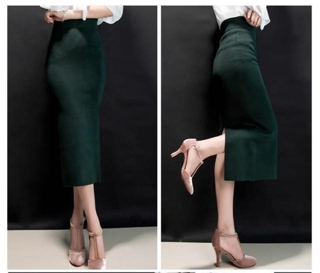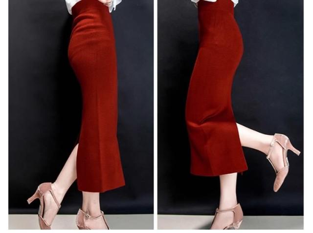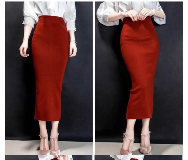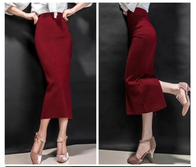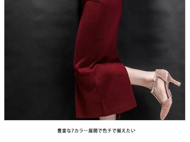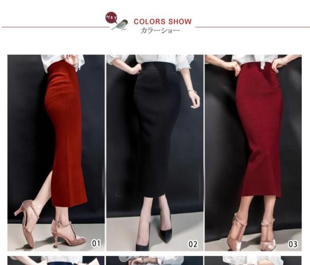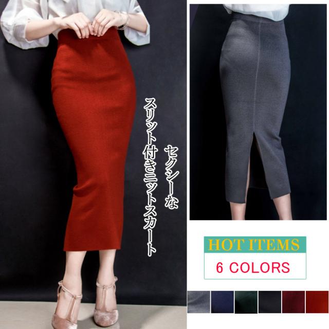 レディーススカート/マキシスカート/ロングスカート/ニットスカート/ロンスカ/タイトスカート/ボトムス/ハイウェスト/スリット/カジュアル/無地/シンプル/秋コーデ/美ライン/秋冬